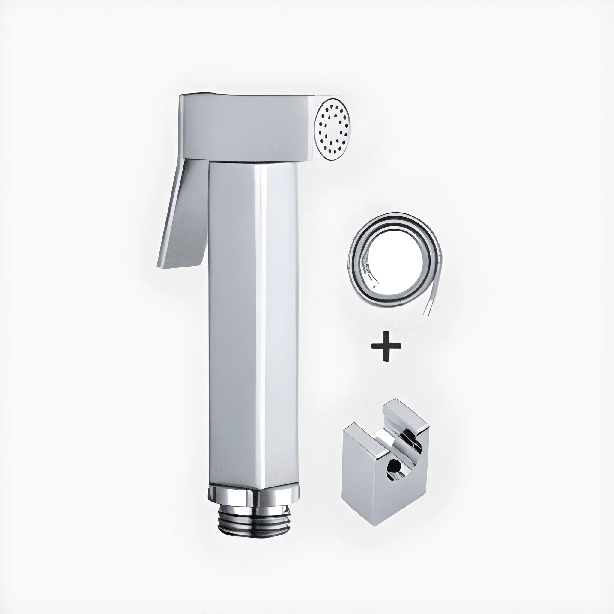 The Siena Brass Square Handle Shattaf Set (Model 6062115) combines durability with a modern square design. This complete set includes a brass spray head, flexible hose, wall bracket, and installation fittings. Built to resist corrosion and ensure long-term use, it fits perfectly in contemporary and classic bathrooms alike.