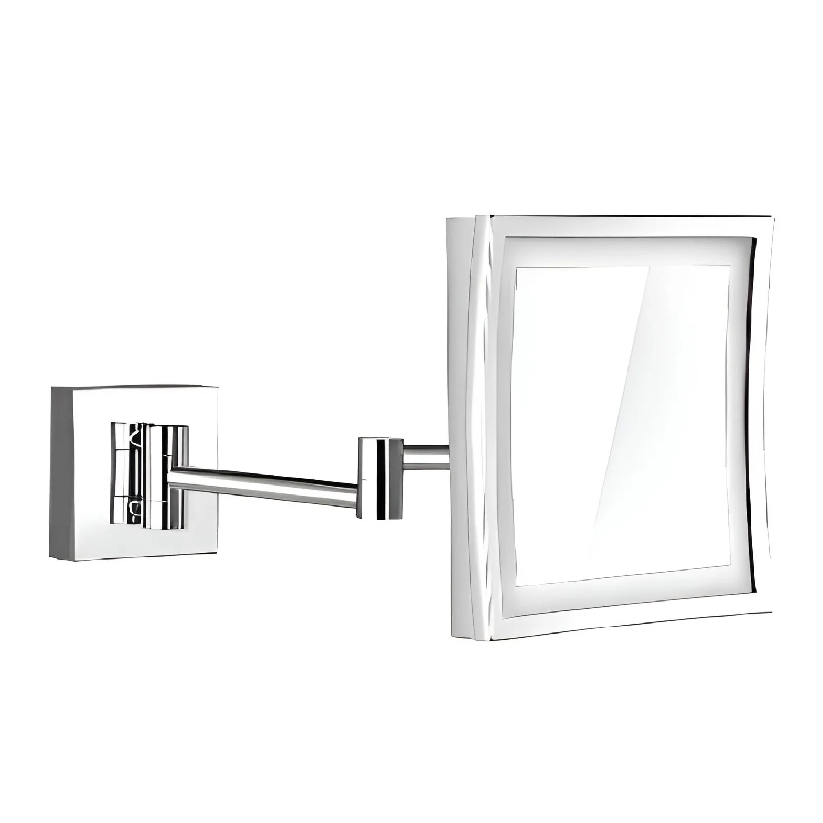 • Square magnifying mirror with polished chrome finish for a contemporary look